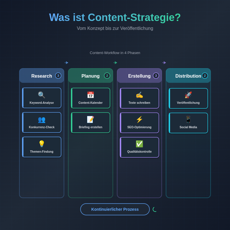 Eine Content-Strategie ist ein datengetriebener Plan, der festlegt, welche Inhalte Sie für welche Keywords erstellen, in welcher Reihenfolge und in welchem Format. Sie basiert auf Keyword-Recherche, Wettbewerbsanalyse und Search Intent und dient als Roadmap für Ihr Content Marketing.
