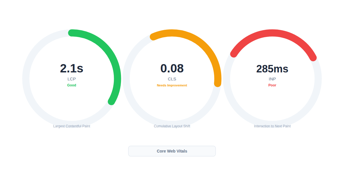 Offiziell alle gleich wichtig. In der Praxis ist INP der härteste Brocken. LCP und CLS kriegt man mit den Basics meistens hin, aber INP erfordert oft echte Arbeit am Code.